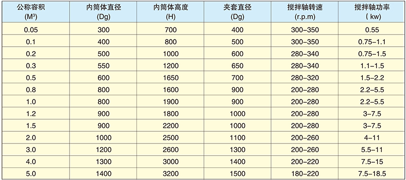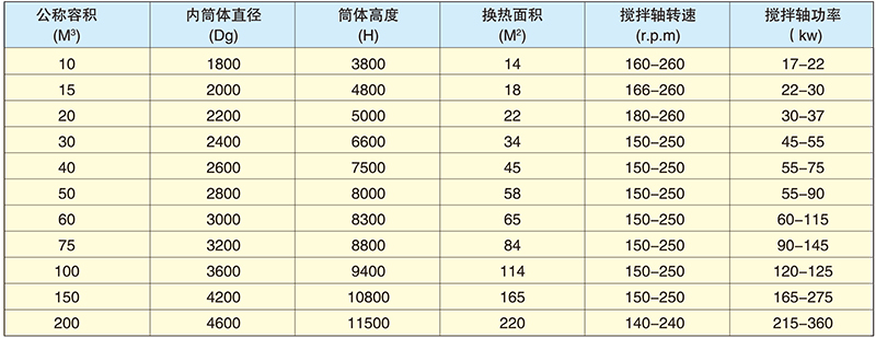 二、發(fā)酵罐主要技術(shù)參數(shù)表
